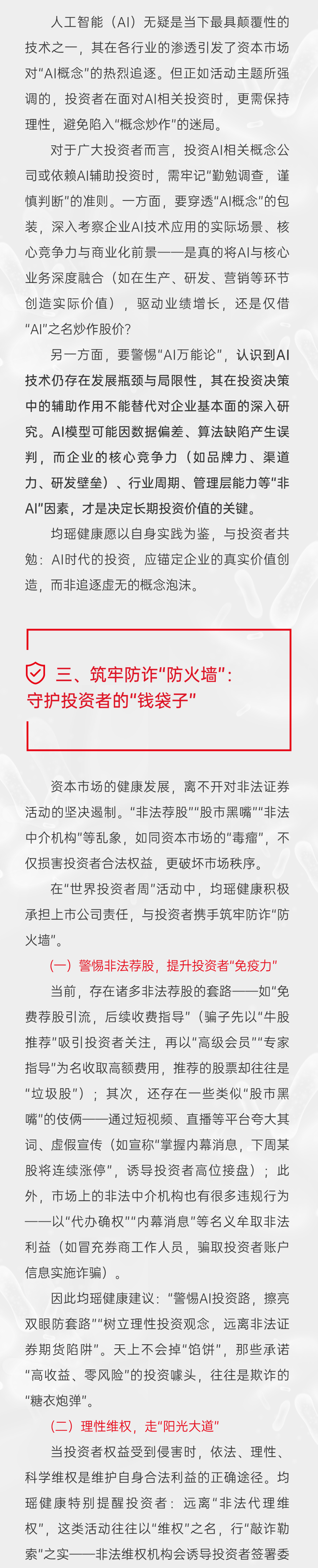 均瑶健康315 投资者教育宣传:守护您的投资权益