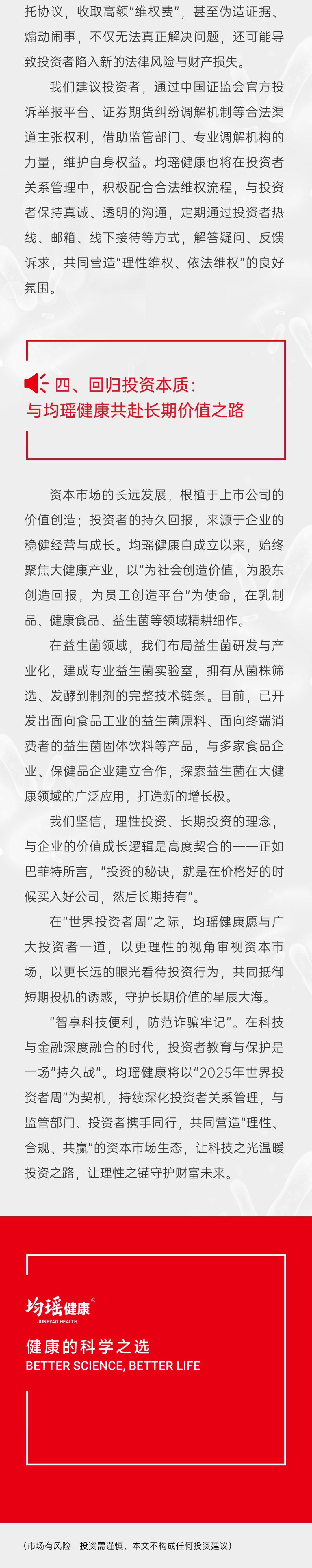 均瑶健康315 投资者教育宣传:守护您的投资权益